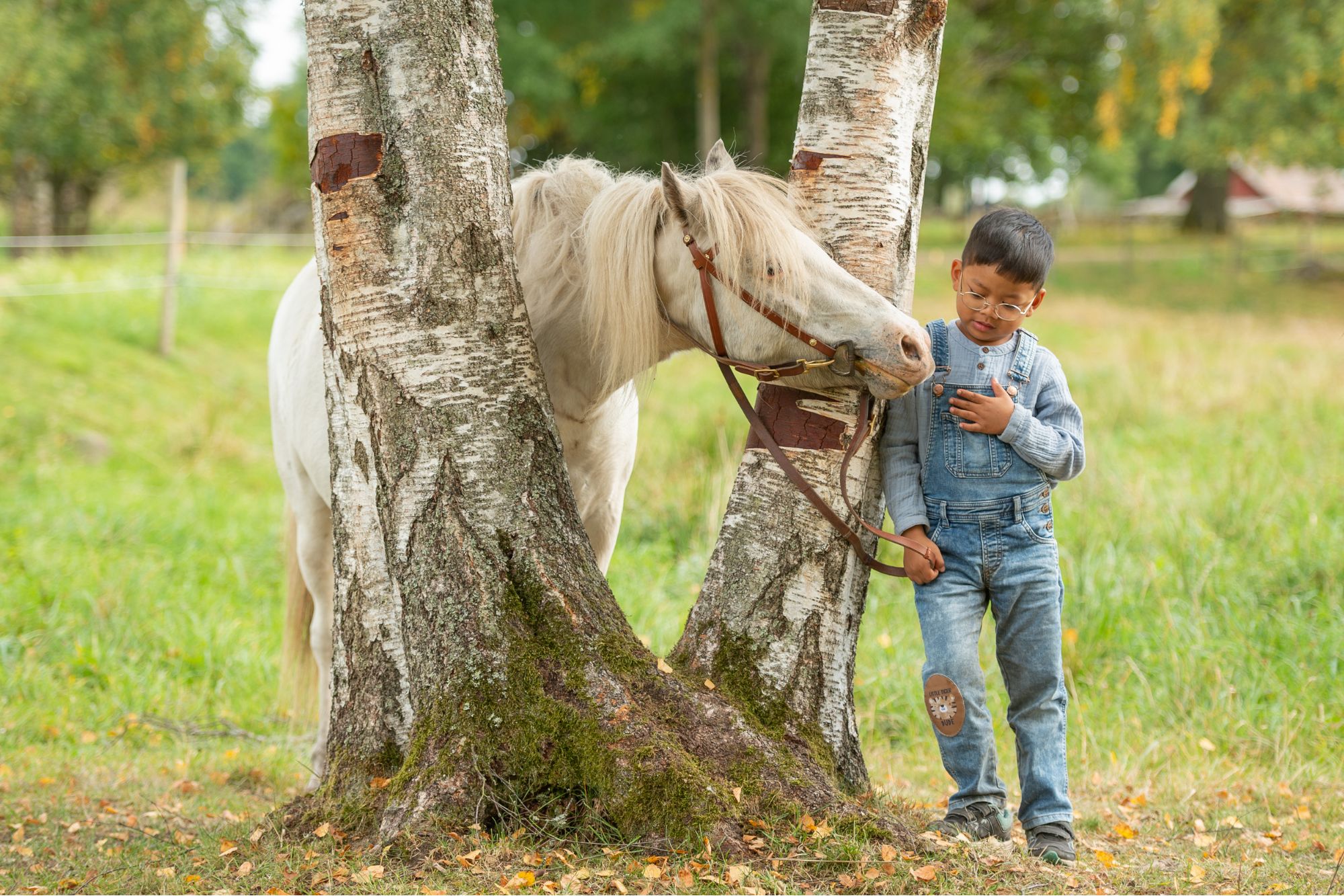 Lillebror Arvid är en väldigt fysisk kille som klättrar snabbt och högt och står på huvudet och hjular och har många myror i brallan så han går på gymnastik och för-brottningsträning. De är såklart med oss på gården och gör saker när det behövs.