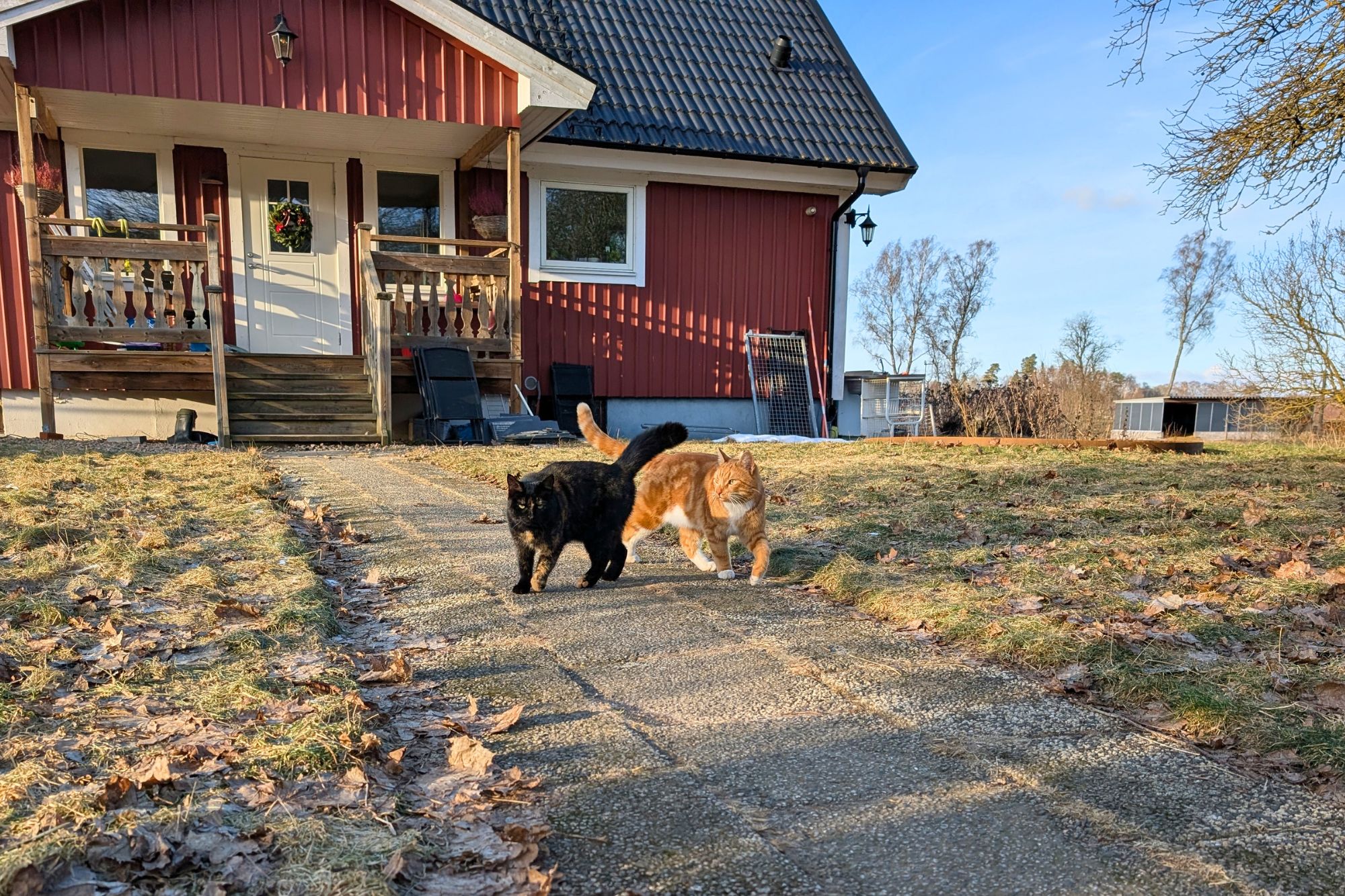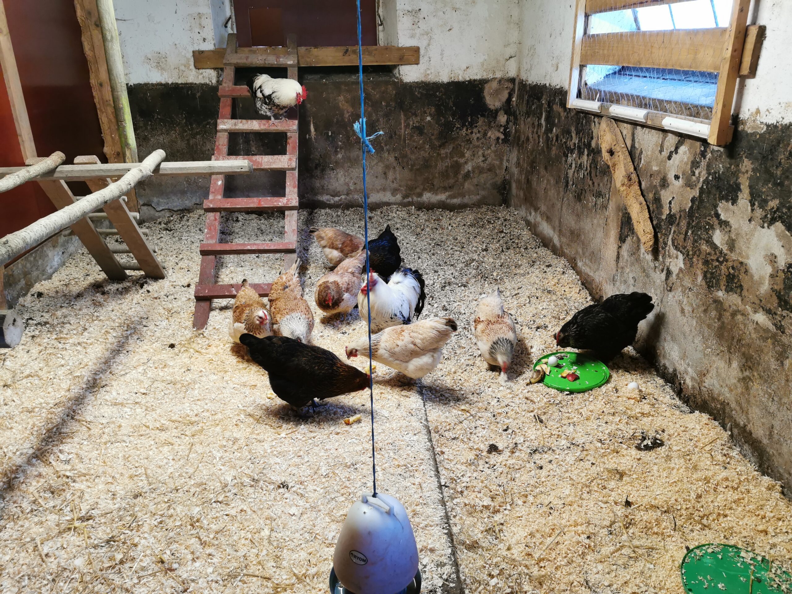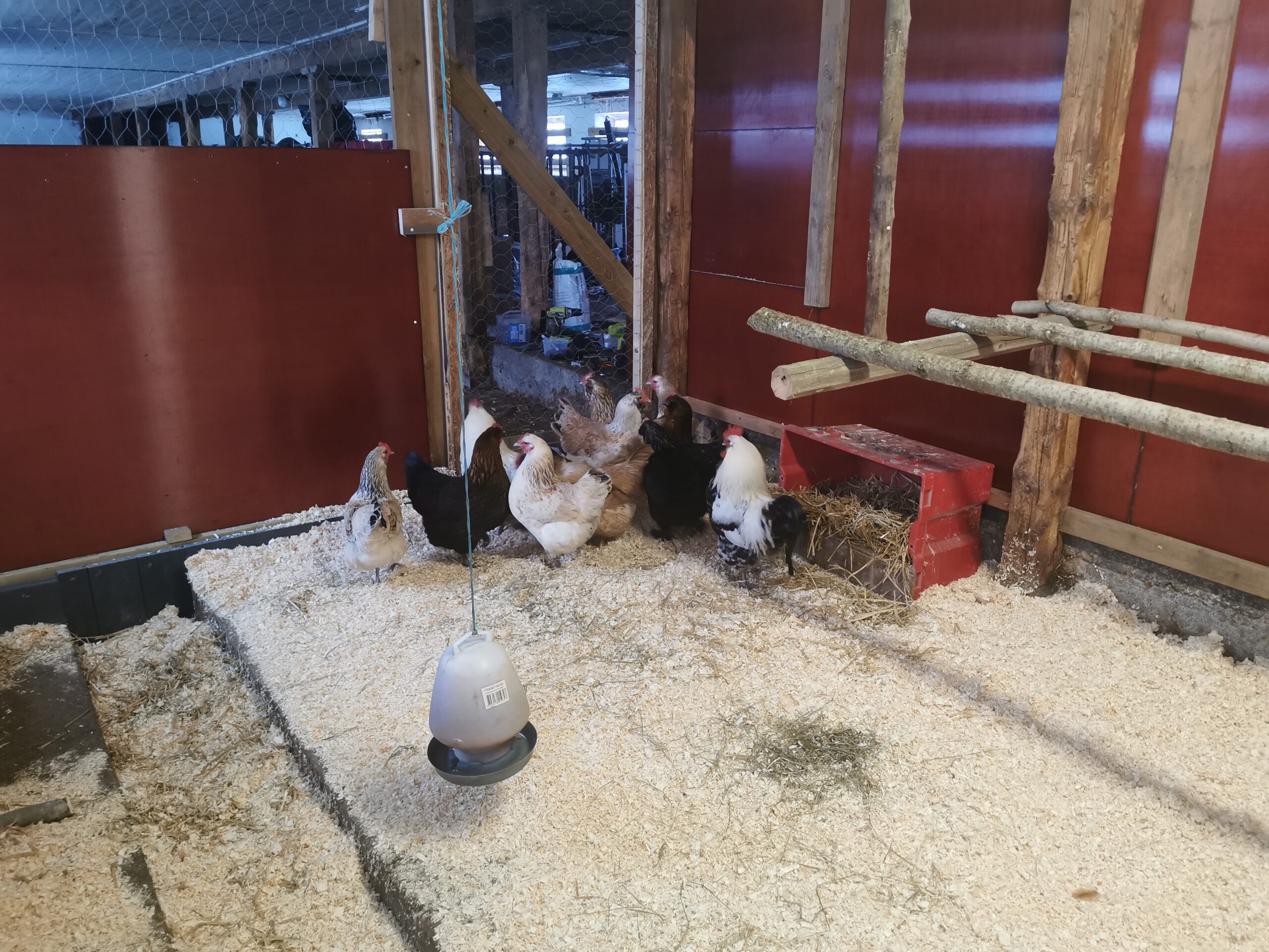 Förutom hästar och nötkreatur bor även höns, katter och hund på gården.